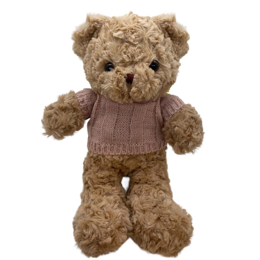 Urso de Pelúcia Marrom com Blusa de Lã na cor Rosa