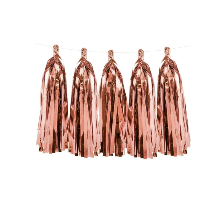 Varal decorativo com pompons metalizados na cor rose e 2 metros de comprimento. Ideal para eventos e festas, trazendo sofisticação, brilho e estilo à decoração.