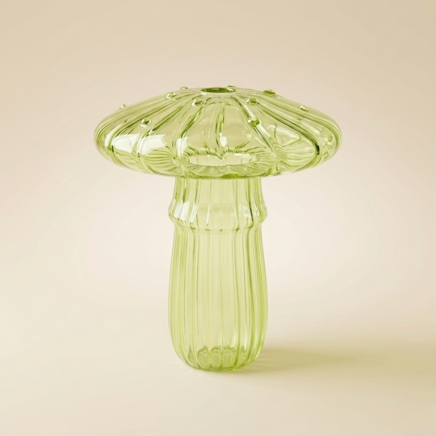 O Enfeite Decorativo de Vidro Cogumelo 11x8,5x8,5cm é uma peça encantadora que une design criativo e funcionalidade, ideal para compor decorações delicadas e cheias de personalidade. Com formato de cogumelo, ele funciona como um mini vaso decorativo, perfeito para acomodar flores pequenas, especialmente flores silvestres. É uma excelente escolha para mesas, prateleiras, nichos e ambientes internos, trazendo um toque lúdico e sofisticado ao espaço.