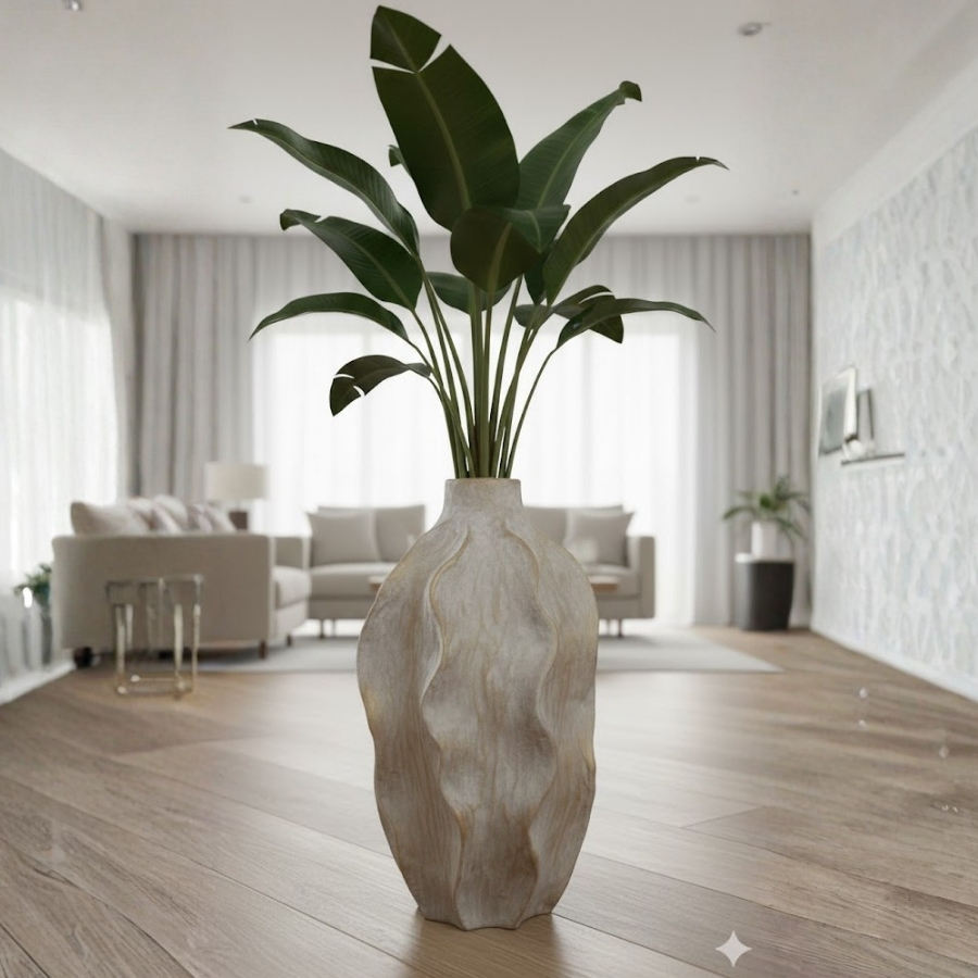 Produzido em cerâmica de alta qualidade, o vaso combina resistência com acabamento artesanal sofisticado. Seu design ousado funciona muito bem como peça única em aparadores, mesas laterais ou prateleiras, criando pontos de interesse visual e composições modernas. Pode ser utilizado com flores secas, galhos decorativos ou simplesmente como objeto ornamental, valorizando ambientes contemporâneos e criativos.