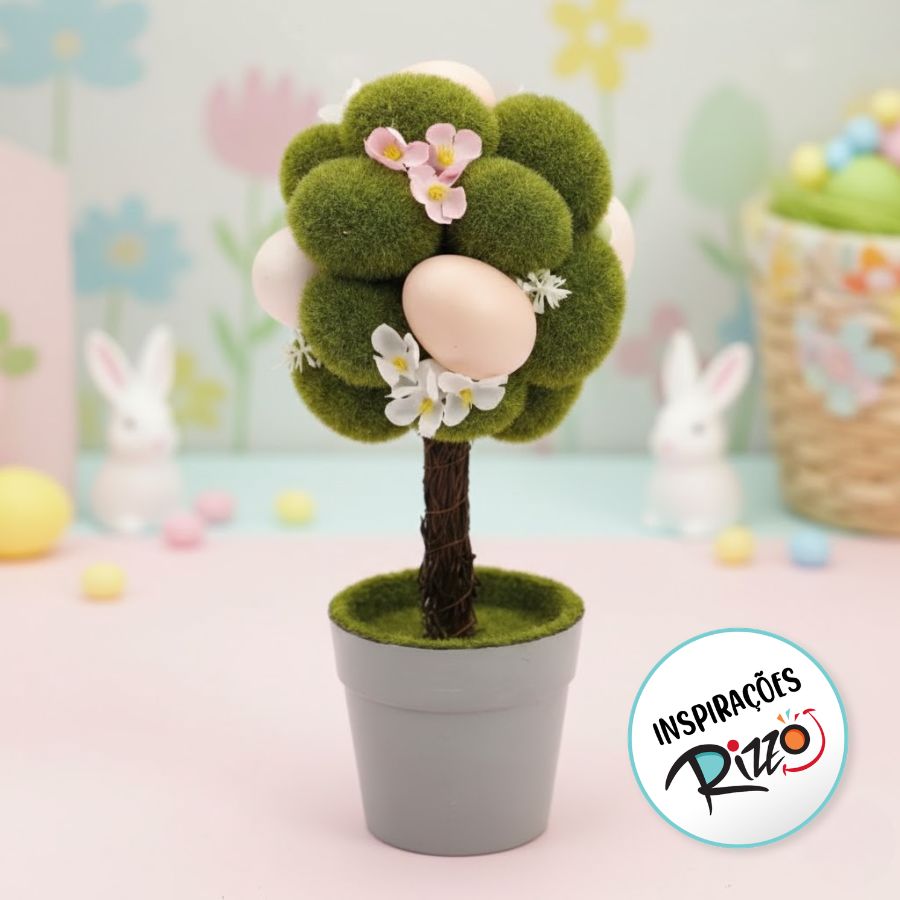 Vaso decorativo com árvore de ovos de Páscoa, 35cm. Um toque especial para enriquecer a decoração temática.
