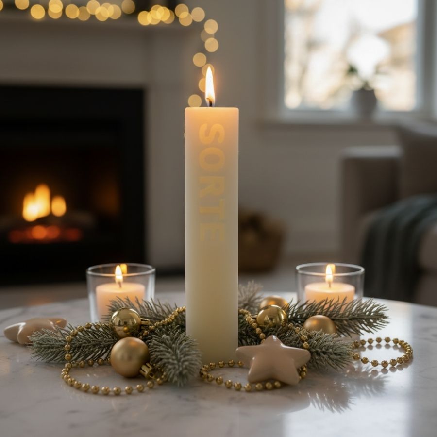 Vela retangular de 15,5cm com palavra “SORTE” em relevo, indicada para decoração, aromaterapia, presentes e projetos artesanais, proporcionando aroma e sofisticação ao ambiente.
