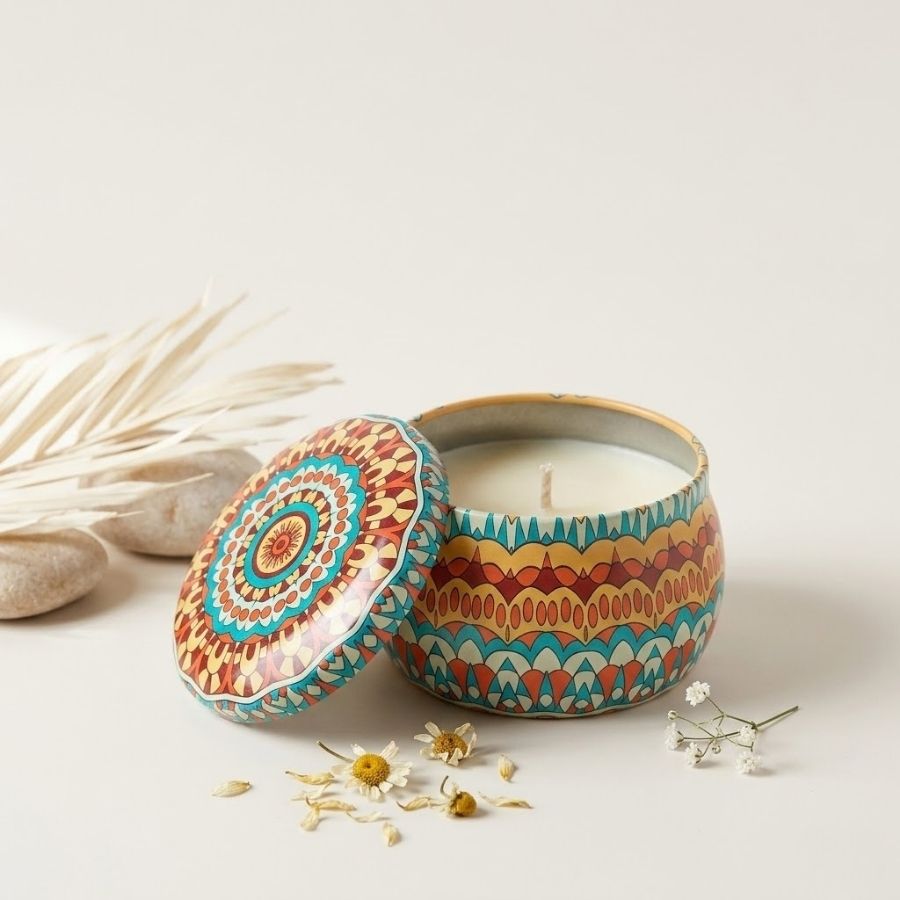 A vela aromática em lata é perfeita para quem busca unir decoração elegante, aromatização de ambientes e praticidade em um único produto. Produzida em lata metálica resistente com delicada estampa floral e mandalas, ela oferece um visual sofisticado e moderno, ideal para valorizar qualquer espaço. Além disso, sua fragrância suave proporciona uma sensação de aconchego, relaxamento e bem-estar, sendo uma excelente opção para momentos especiais.