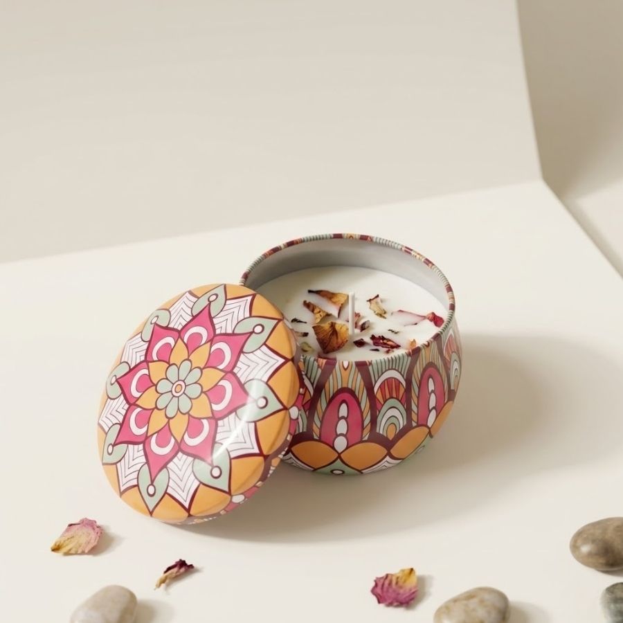 A vela aromática em lata é perfeita para quem busca unir decoração elegante, aromatização de ambientes e praticidade em um único produto. Produzida em lata metálica resistente com delicada estampa floral e mandalas, ela oferece um visual sofisticado e moderno, ideal para valorizar qualquer espaço. Além disso, sua fragrância suave proporciona uma sensação de aconchego, relaxamento e bem-estar, sendo uma excelente opção para momentos especiais.