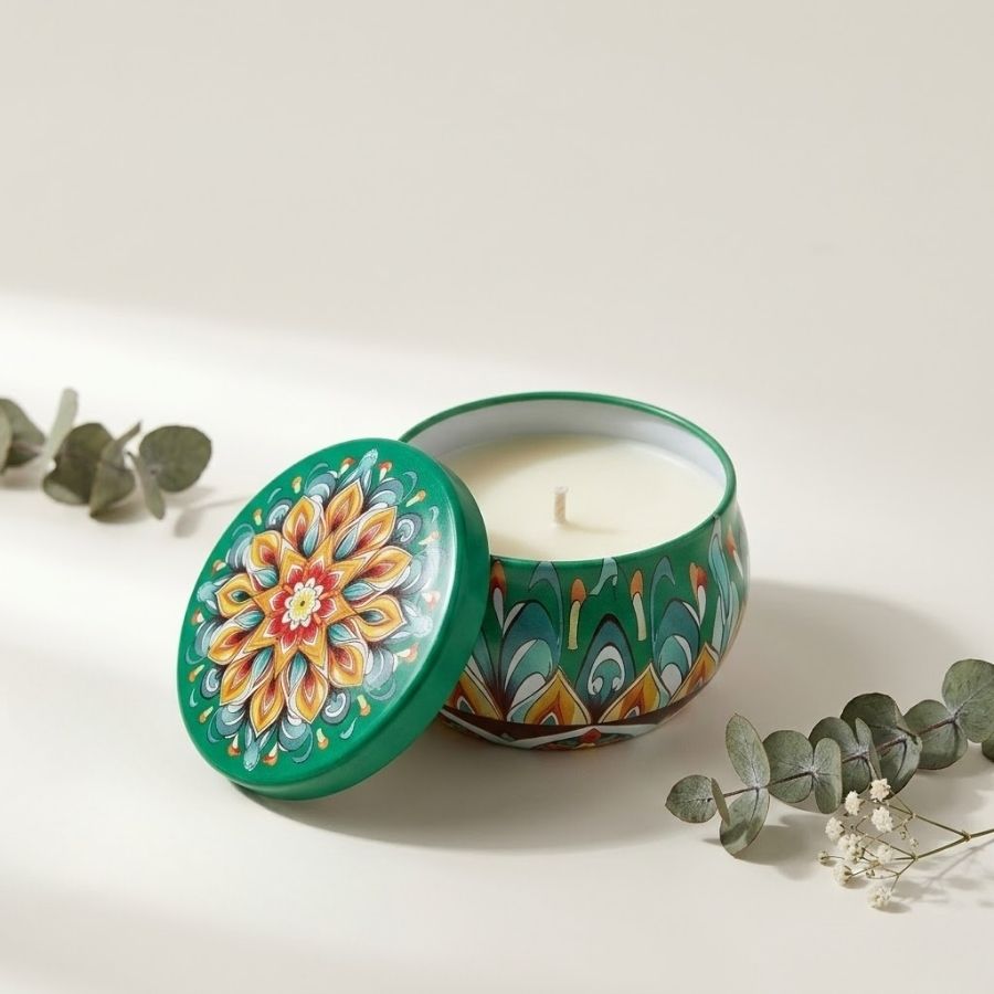 A vela aromática em lata é perfeita para quem busca unir decoração elegante, aromatização de ambientes e praticidade em um único produto. Produzida em lata metálica resistente com delicada estampa floral e mandalas, ela oferece um visual sofisticado e moderno, ideal para valorizar qualquer espaço. Além disso, sua fragrância suave proporciona uma sensação de aconchego, relaxamento e bem-estar, sendo uma excelente opção para momentos especiais.