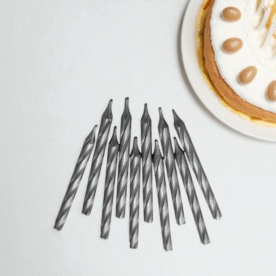 A Vela Palito Espiral Metalizada Prata 6cm é compacta, elegante e indispensável para uma decoração de festa completa.