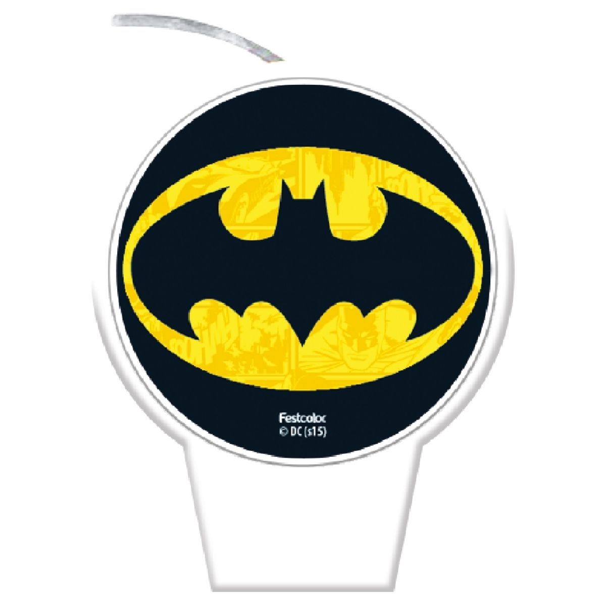 Fixe a vela diretamente no topo do bolo, pressionando levemente a base para que fique firme. Combine com topos, balões e decoração temática Batman para um visual completo.