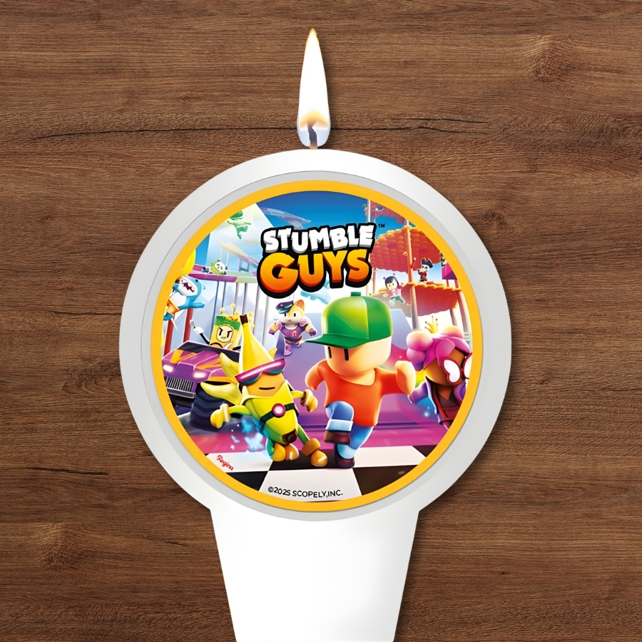 Torne o momento do parabéns ainda mais especial com a Vela Plana Stumble Guys! Inspirada no jogo que faz sucesso entre crianças e adolescentes, essa vela temática é o complemento perfeito para o bolo de aniversário, trazendo cor, diversão e um toque de personalidade à comemoração.