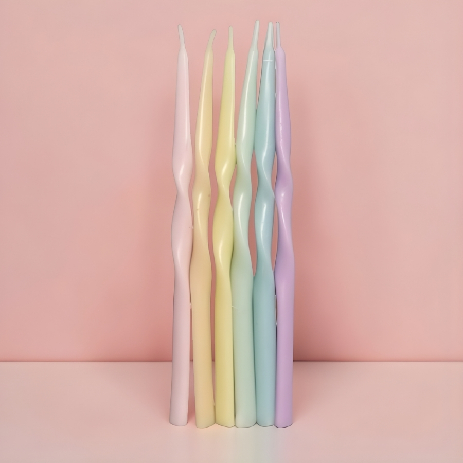 Vela decorativa para bolo com formato torcido colorido, com altura aproximada de 12,5cm. Indicada para uso em bolos de aniversário ou composições decorativas em festas e comemorações. Produto destinado ao uso durante celebrações. Recomenda-se posicionar a vela em superfície estável antes de acender, manter afastada de materiais inflamáveis e utilizar sob supervisão de um adulto.