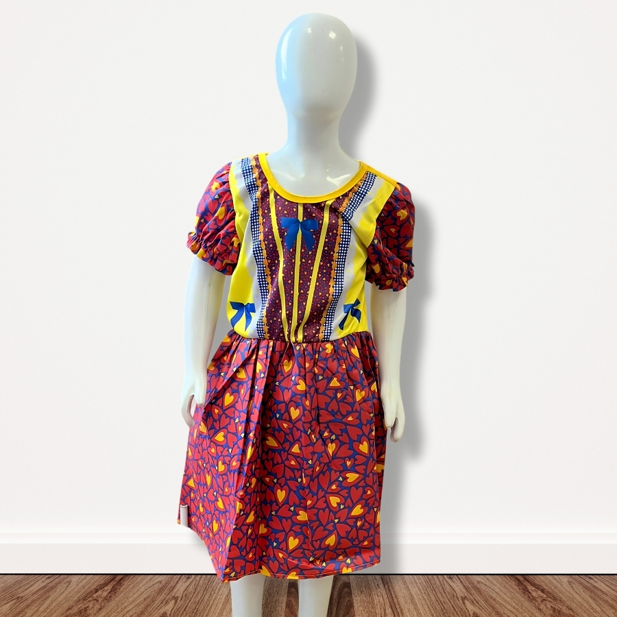 O Vestido Colorido Festa Junina - Fofurinha - Amarelo e Vermelho com Corações - GG é ideal para meninas de 10 a 12 anos que desejam se destacar nas festas juninas com estilo e alegria. Com cores vibrantes e delicados corações estampados, o modelo une tradição, charme e diversão, garantindo um visual encantador para quadrilhas, apresentações escolares ou eventos temáticos.